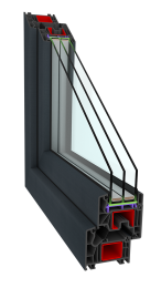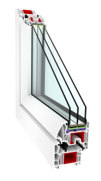 Шестикамерные профили с монтажной глубиной 80 мм и тройным стеклопакетам 48 мм с теплоизолированными стеклянными прокладками обеспечивают U-значение 0,78 Вт / м²K